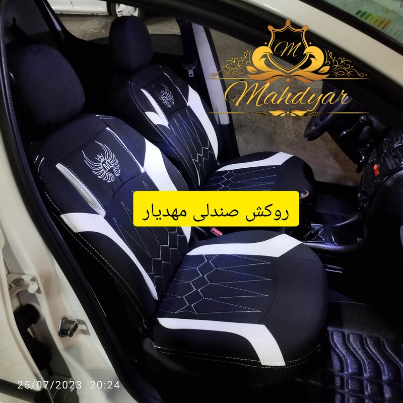روکش صندلی کوییک و تیبا2پارچه جودون برزنت سنگین مشکی بند سفید