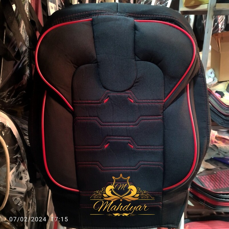 روکش صندلی سایناوتیبا سفارشی مشکی دوخت قرمز طرحVIPدرجه یک الگوی تضمینی جودون برزنت سنگین
